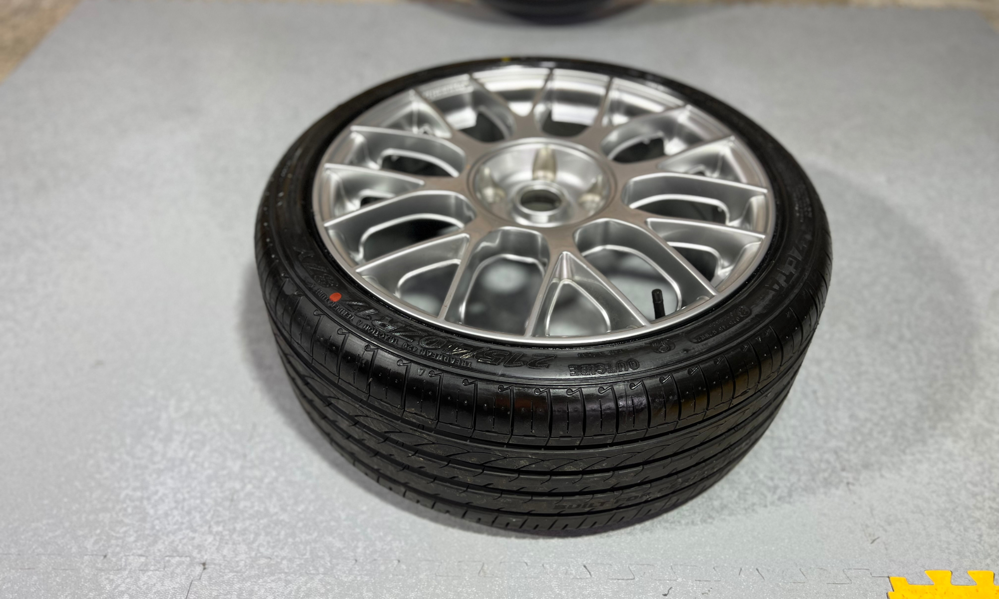 - Positionnez la roue à plat sur une surface plane, la partie extérieure vers le haut.
